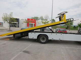 Finally the tow truck arrived. The Engineer and I both glanced at each other and tried not to laugh. Tow trucks in France are made for giants.